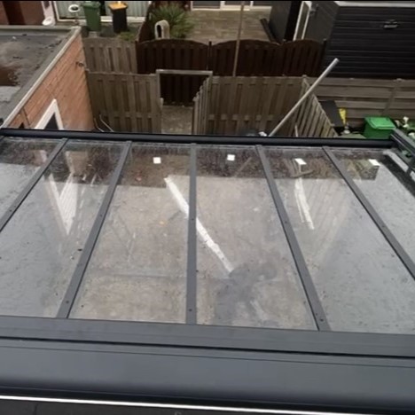 Unsere Terrassenüberdachung/Veranda wird zu einer Erweiterung Ihres Wohnraums. Erleben Sie den Anbau mit hochwertigen Glasschiebewänden für optimalen Komfort und Stil.